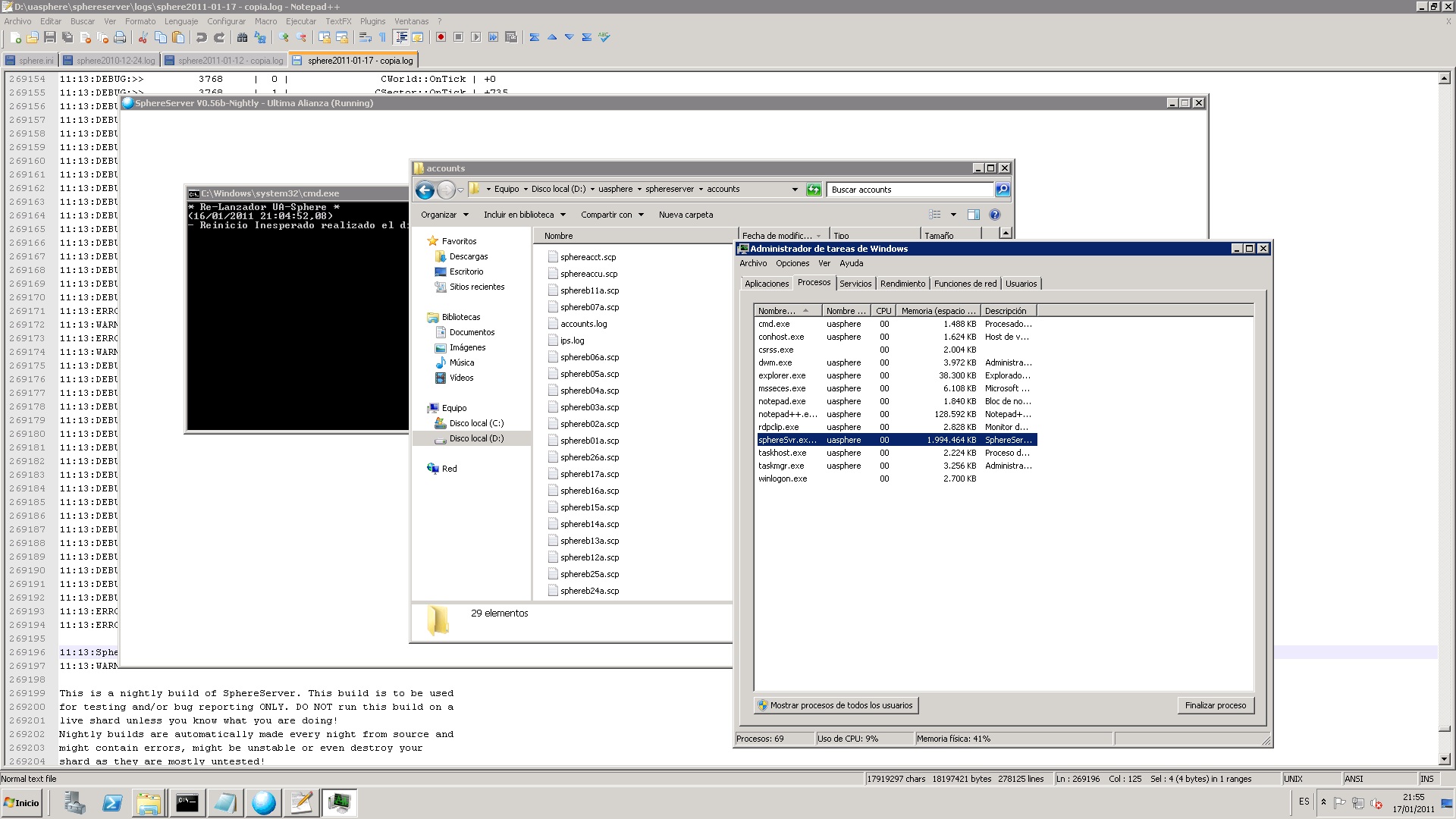 | Description | Yesterday I switched to the latest version of the emulator (I was using 3 January, I was wrong) and I found the error in the description in less than 24 hours on two occasions. In the first case with UseExtraBuffer enabled server still worked but people could not connect, no saves were made. The second error after 3 minutes the server crashed. Sphere reports (crash dumps) are all 0KB. All players are using UO: 2D Client SA 07082 | |||||