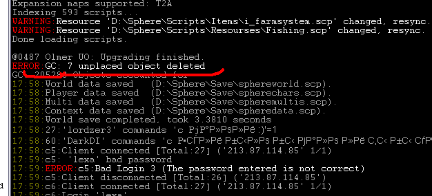| Description | @0487 Olmer UO: Upgrading finished. ERROR:GC: 7 unplaced object deleted GC: 205288 Objects accounted for 17:58:World data saved (D:\Sphere\Save\sphereworld.scp). 17:58:Player data saved (D:\Sphere\Save\spherechars.scp). | |||||