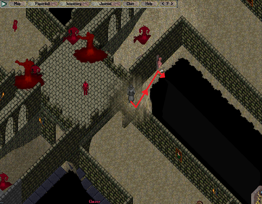 | Description | Using EF_DiagonalWalkCheck + EF_WalkCheck enabled and MountHeight disabled, NPCs can pass through some walls Case 1 (Hythloth Level 4 @ 6085,60) The gargoyle doesnt pass directly through the wall, but standing here on my P on "1st floor", the gargoyle can step 1 foot inside the wall, then it continues walking through these others walls until reach the wall on "2nd floor" and then it goes to the other side of the wall Case 2 (Fire Dungeon @ 5740,1300) There's a i_fence_iron (ATTR=010) added there but the balron can pass through it like there's no fence here | |||||