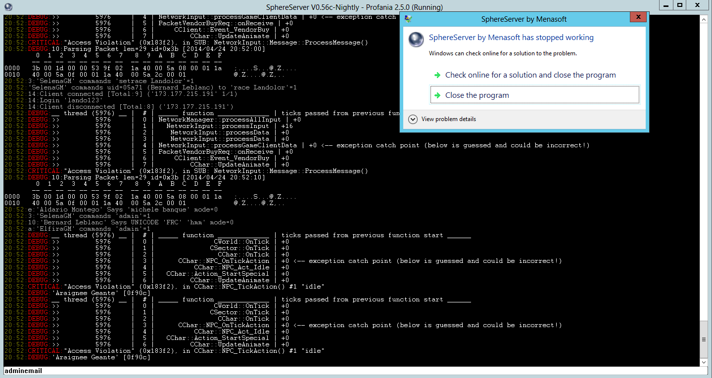 | Steps To Reproduce | I still have random crash !!! After players talks ! It happen something like 2-3 times in a row in the same hour. I don't know what to do! Please help me. I can give you access to my server if you want. | |||||